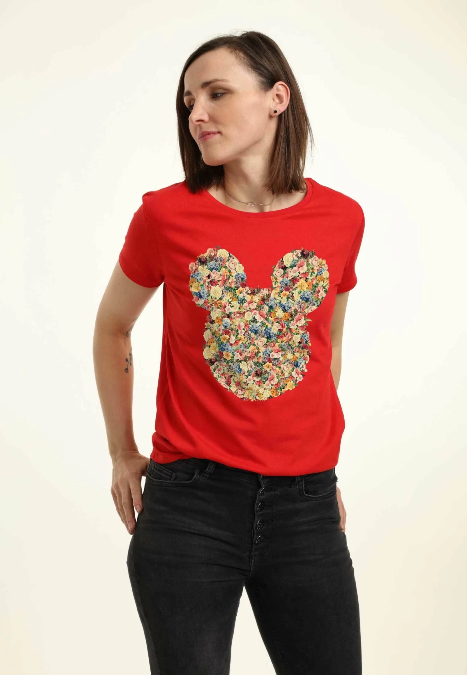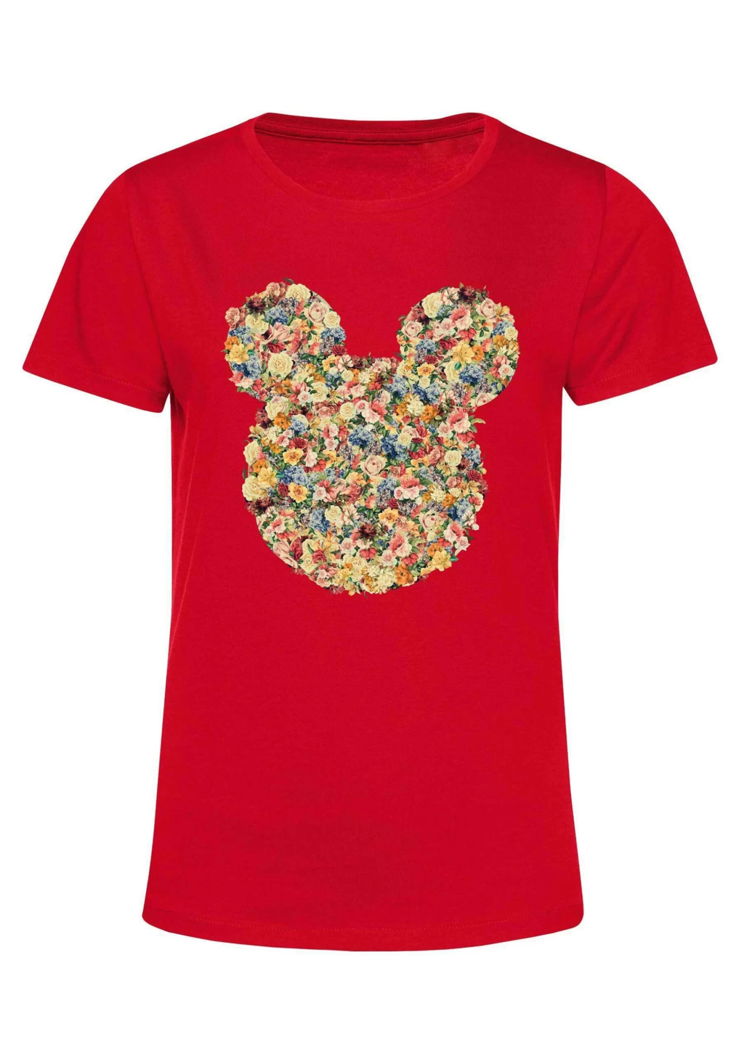 Disney Classic Mickey Floral Mickey Head – T-Shirt Print – Red